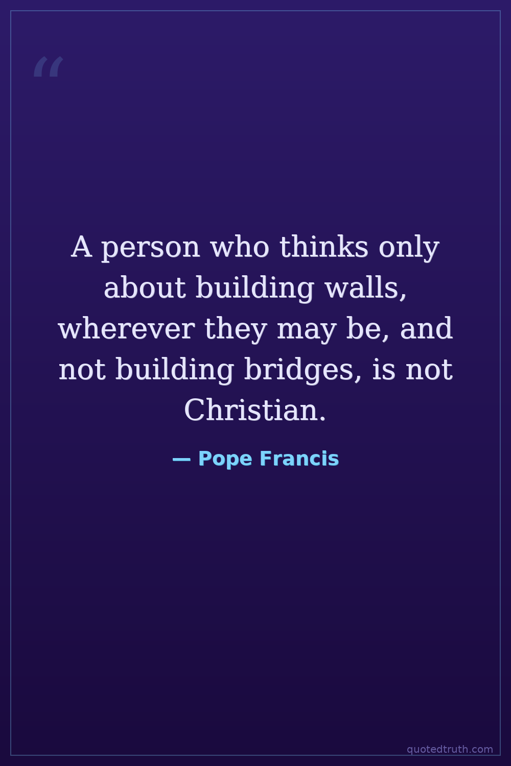A person who thinks only about building walls, wherever they may be, and not building bridges, is not Christian.