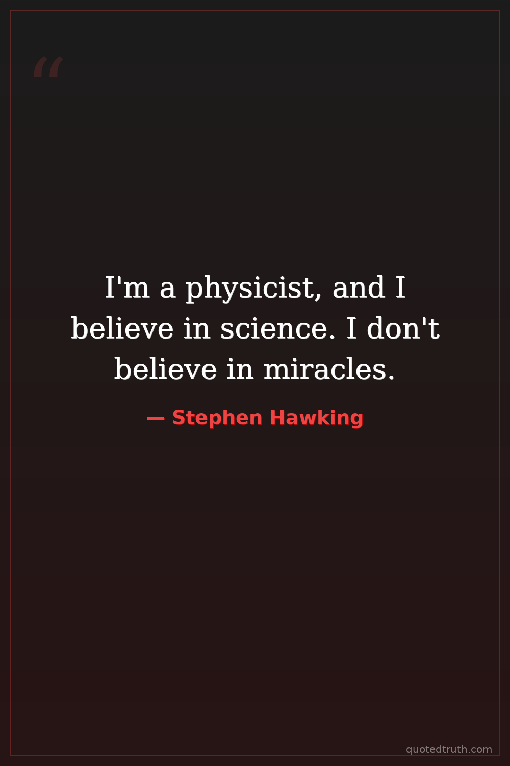 I'm a physicist, and I believe in science. I don't believe in miracles.