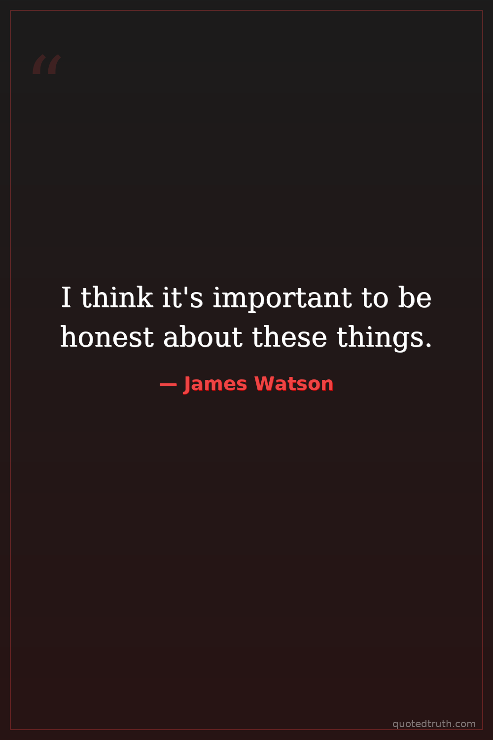 I think it's important to be honest about these things.