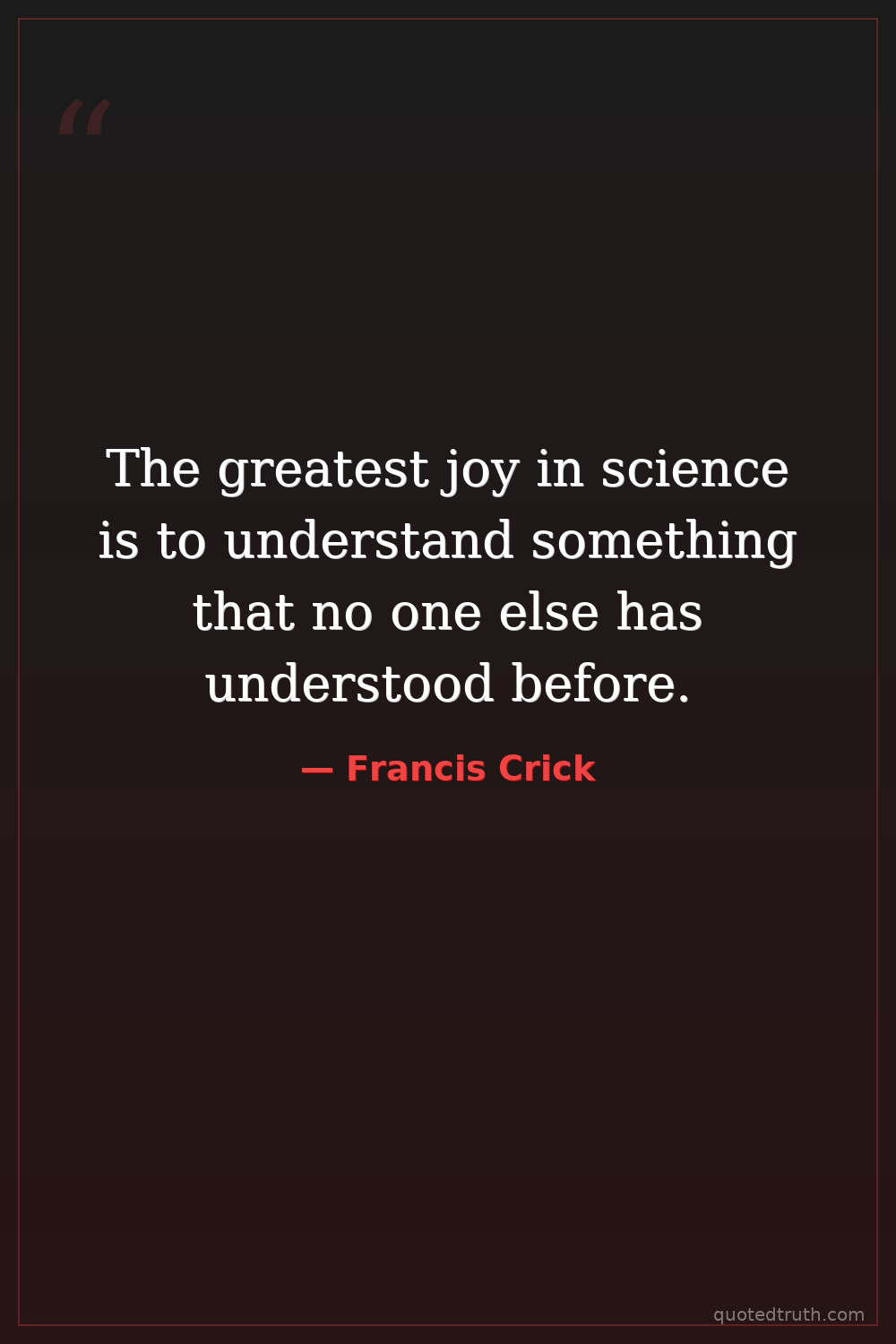 The greatest joy in science is to understand something that no one else has understood before.