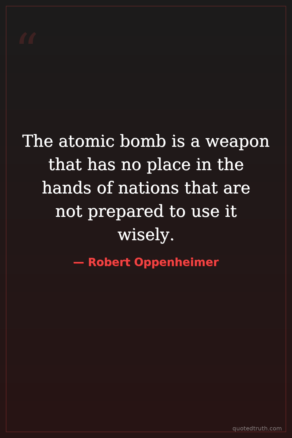 The atomic bomb is a weapon that has no place in the hands of nations that are not prepared to use it wisely.