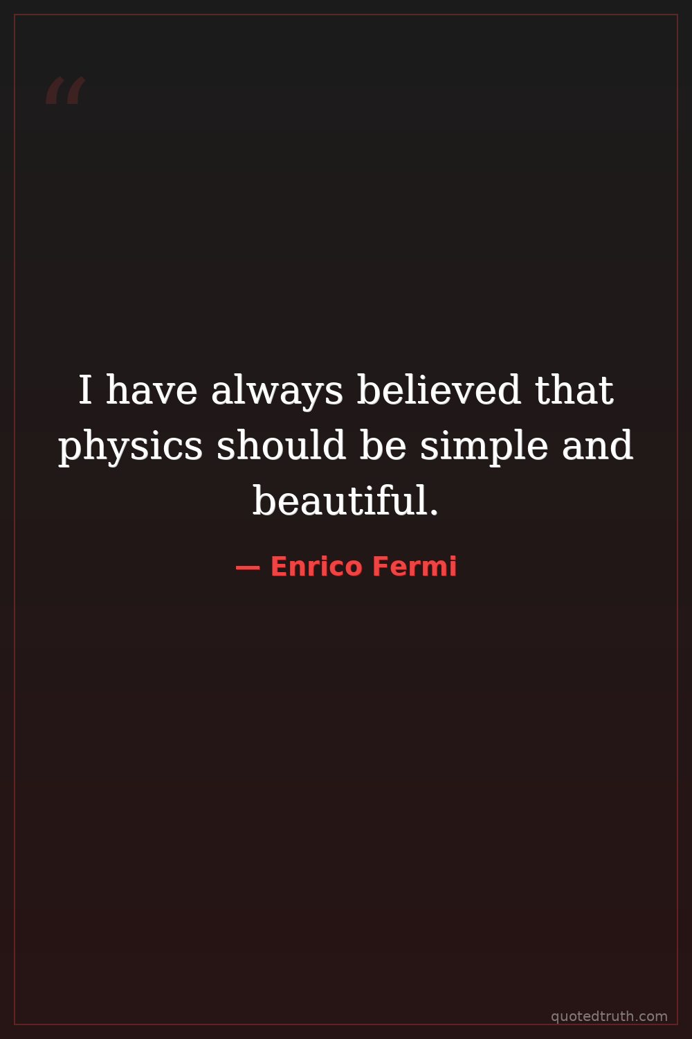 I have always believed that physics should be simple and beautiful.