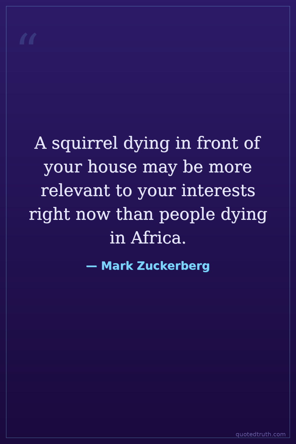 A squirrel dying in front of your house may be more relevant to your interests right now than people dying in Africa.