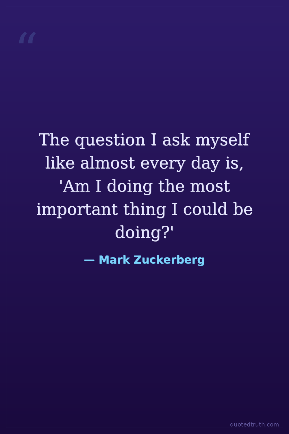 The question I ask myself like almost every day is, 'Am I doing the most important thing I could be doing?'