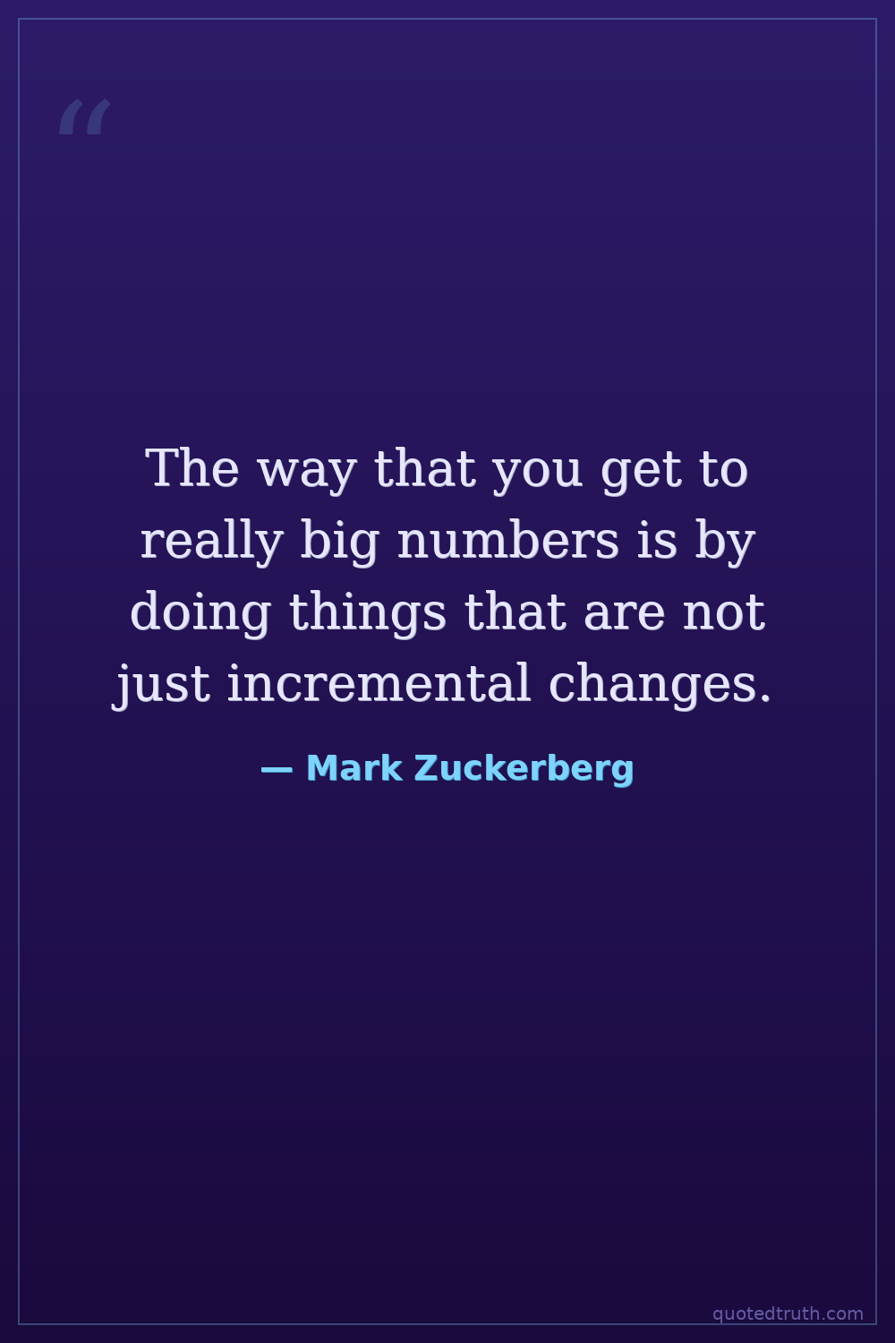 The way that you get to really big numbers is by doing things that are not just incremental changes.