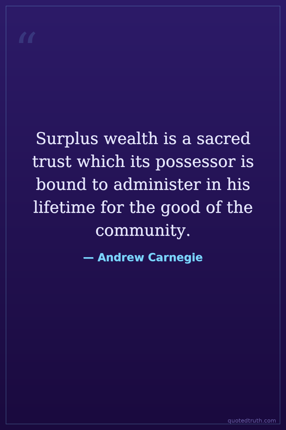 Surplus wealth is a sacred trust which its possessor is bound to administer in his lifetime for the good of the community.