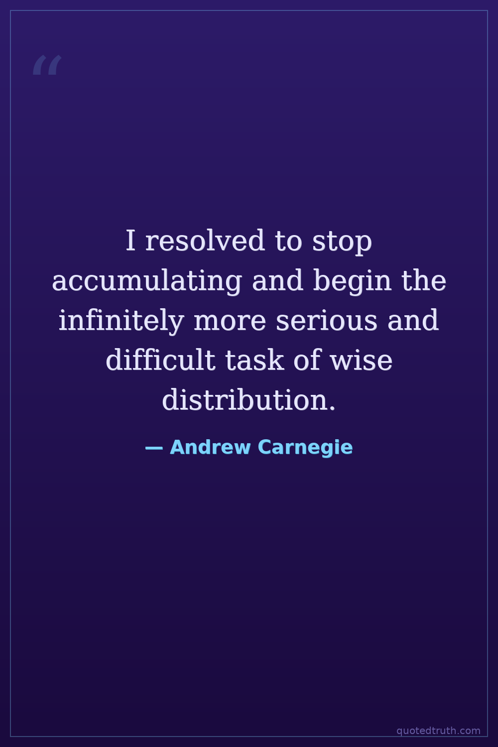 I resolved to stop accumulating and begin the infinitely more serious and difficult task of wise distribution.
