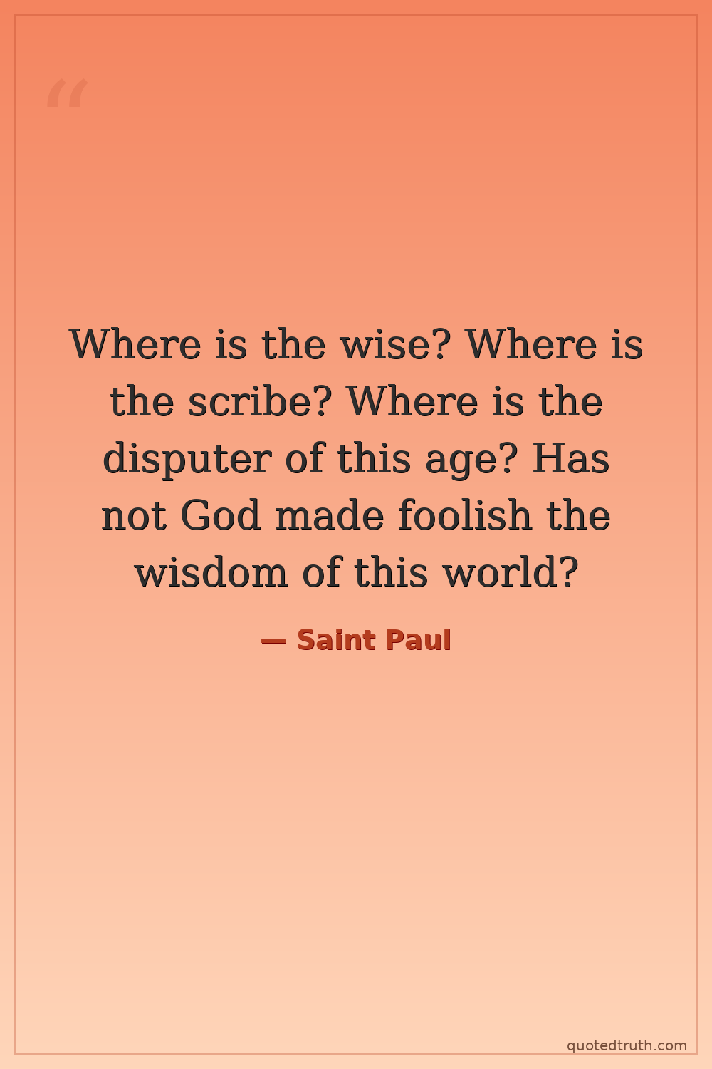 Where is the wise? Where is the scribe? Where is the disputer of this age? Has not God made foolish the wisdom of this world?