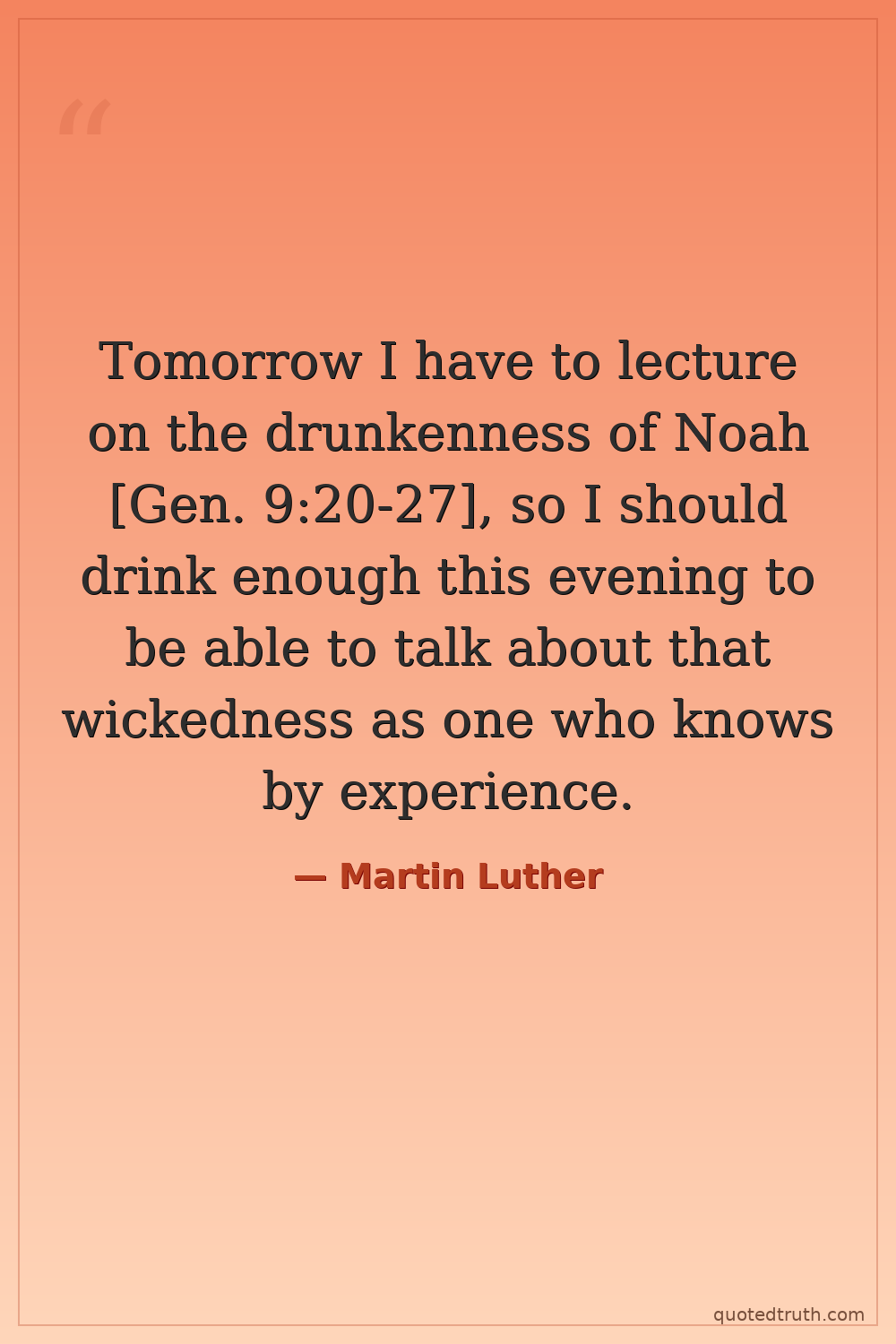 Tomorrow I have to lecture on the drunkenness of Noah [Gen. 9:20-27], so I should drink enough this evening to be able to talk about that wickedness as one who knows by experience.