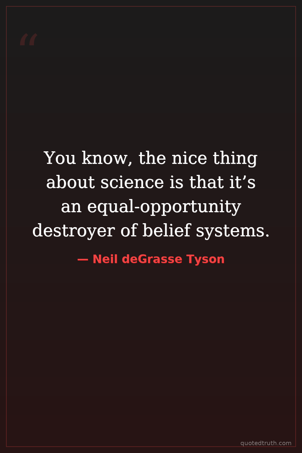 You know, the nice thing about science is that it’s an equal-opportunity destroyer of belief systems.
