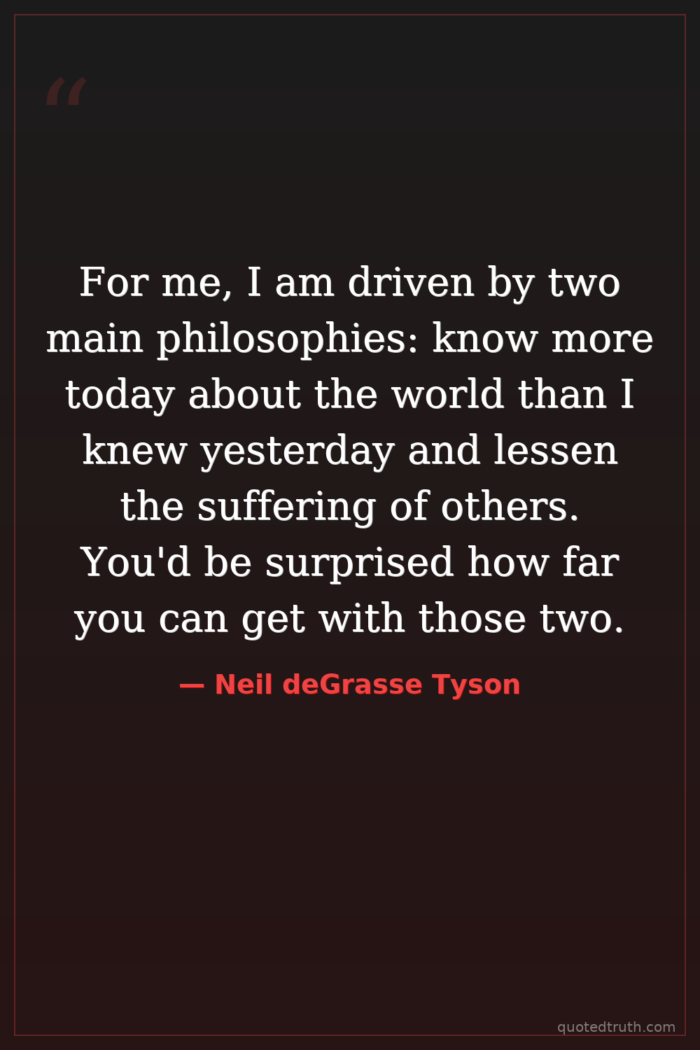 For me, I am driven by two main philosophies: know more today about the world than I knew yesterday and lessen the suffering of others. You'd be surprised how far you can get with those two.