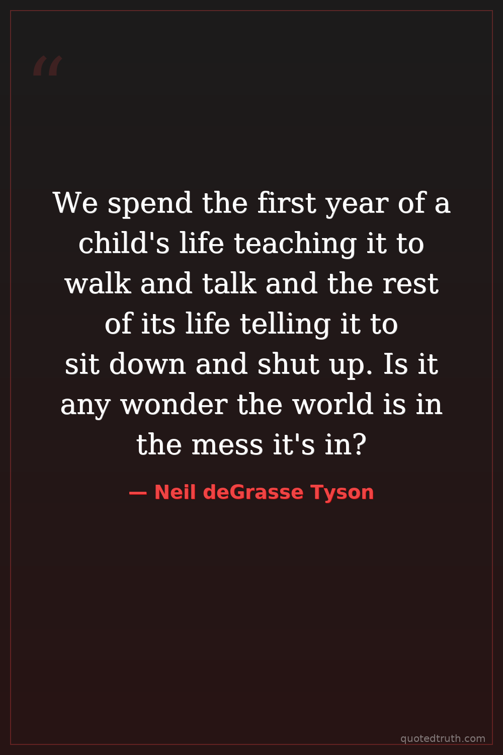 We spend the first year of a child's life teaching it to walk and talk and the rest of its life telling it to sit down and shut up. Is it any wonder the world is in the mess it's in?
