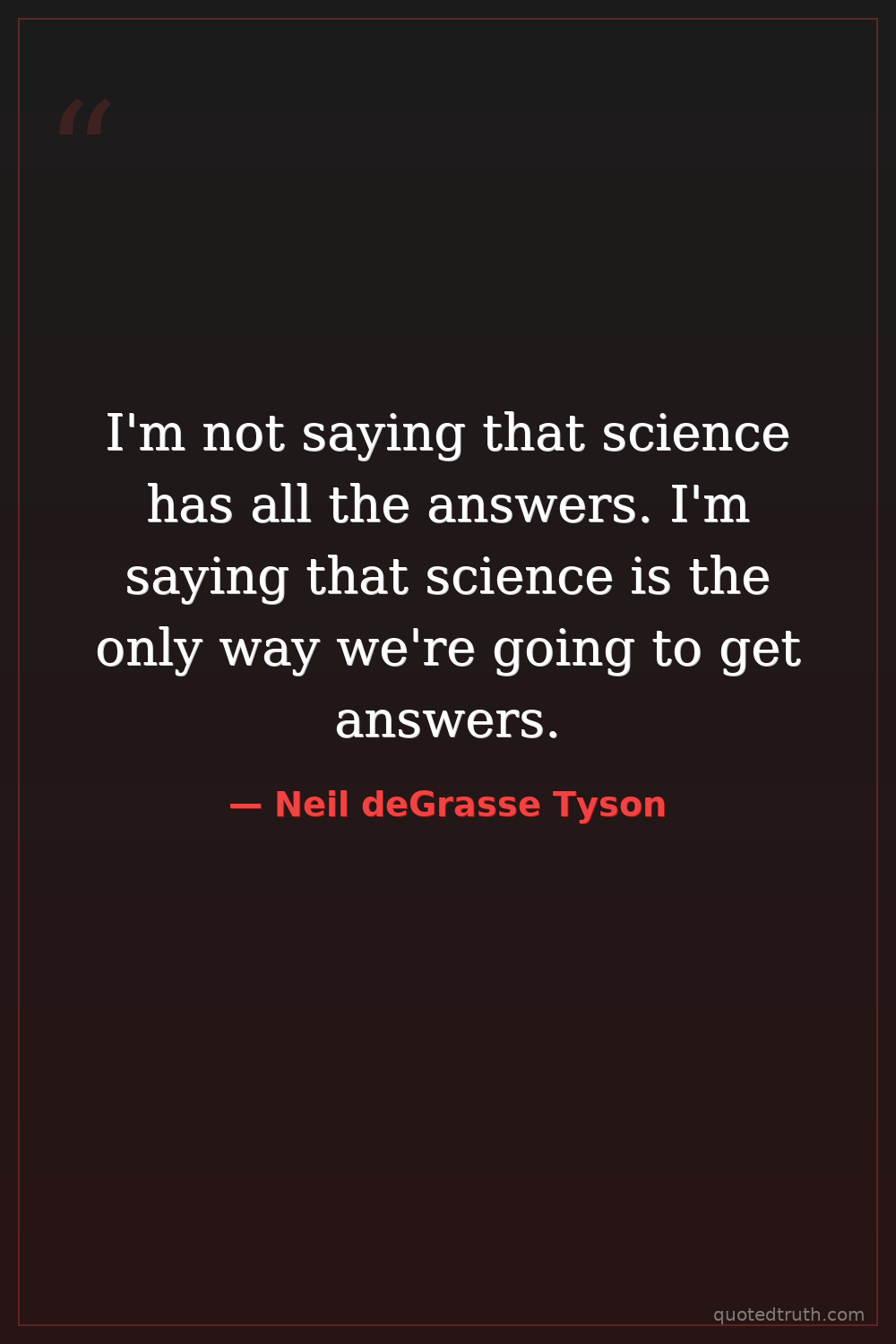 I'm not saying that science has all the answers. I'm saying that science is the only way we're going to get answers.