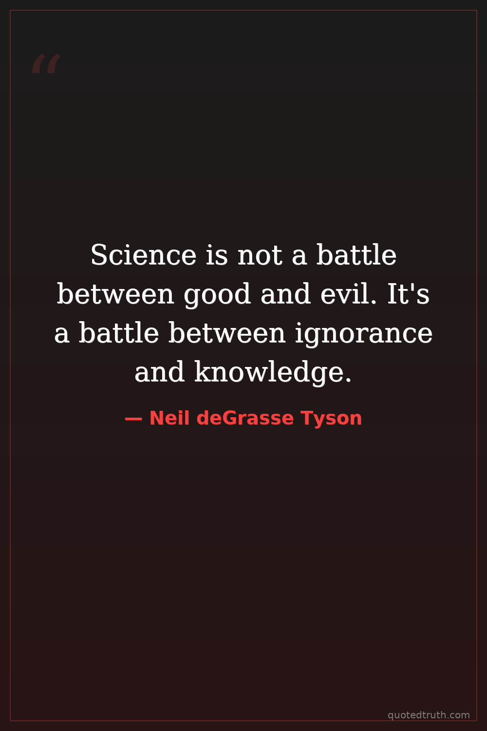 Science is not a battle between good and evil. It's a battle between ignorance and knowledge.