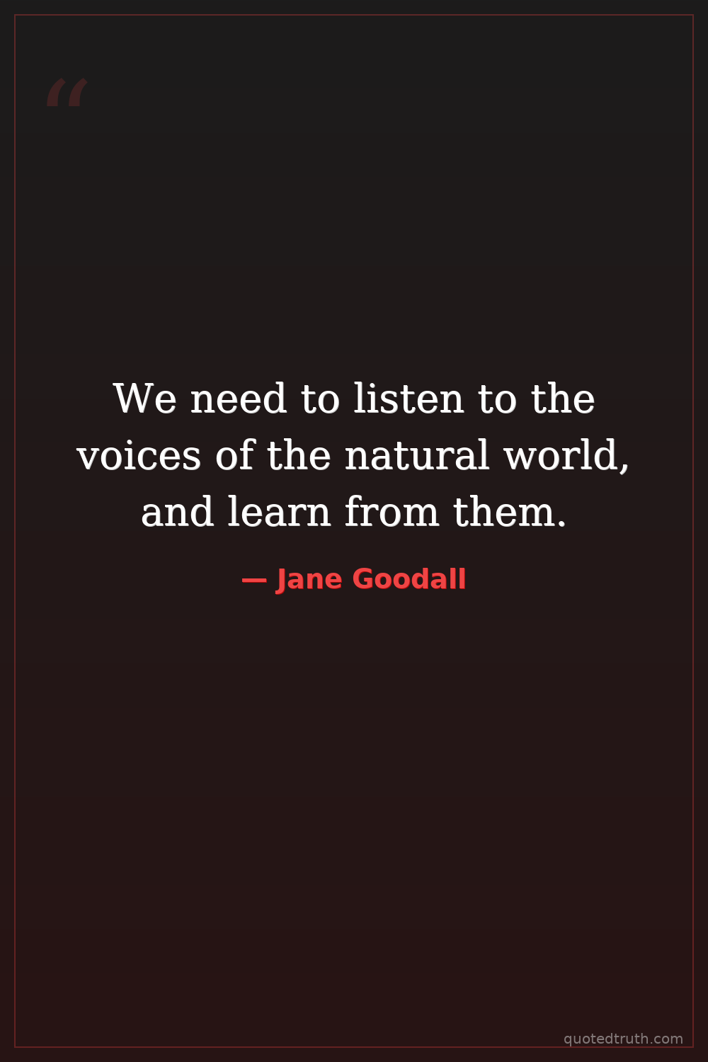 We need to listen to the voices of the natural world, and learn from them.