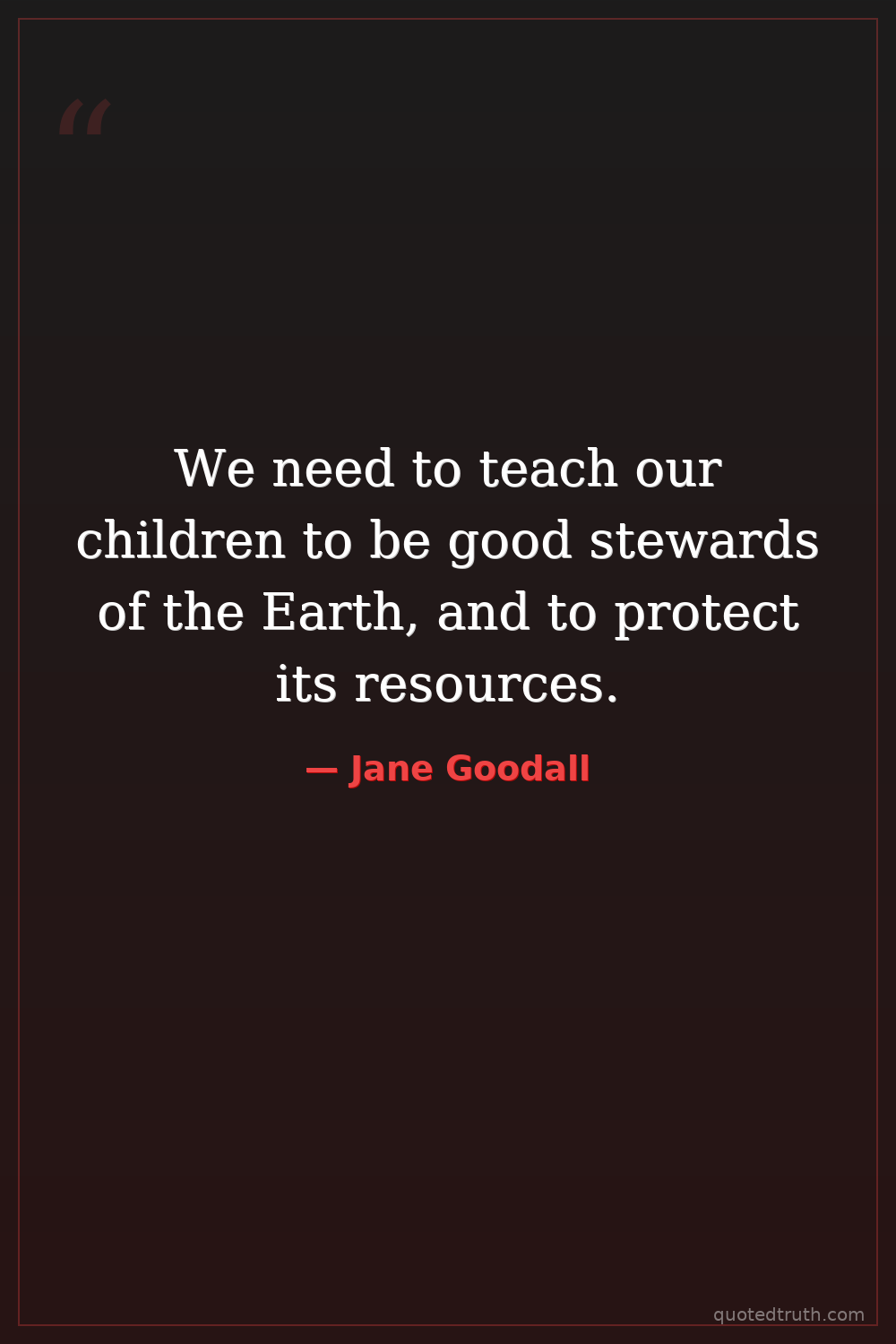 We need to teach our children to be good stewards of the Earth, and to protect its resources.