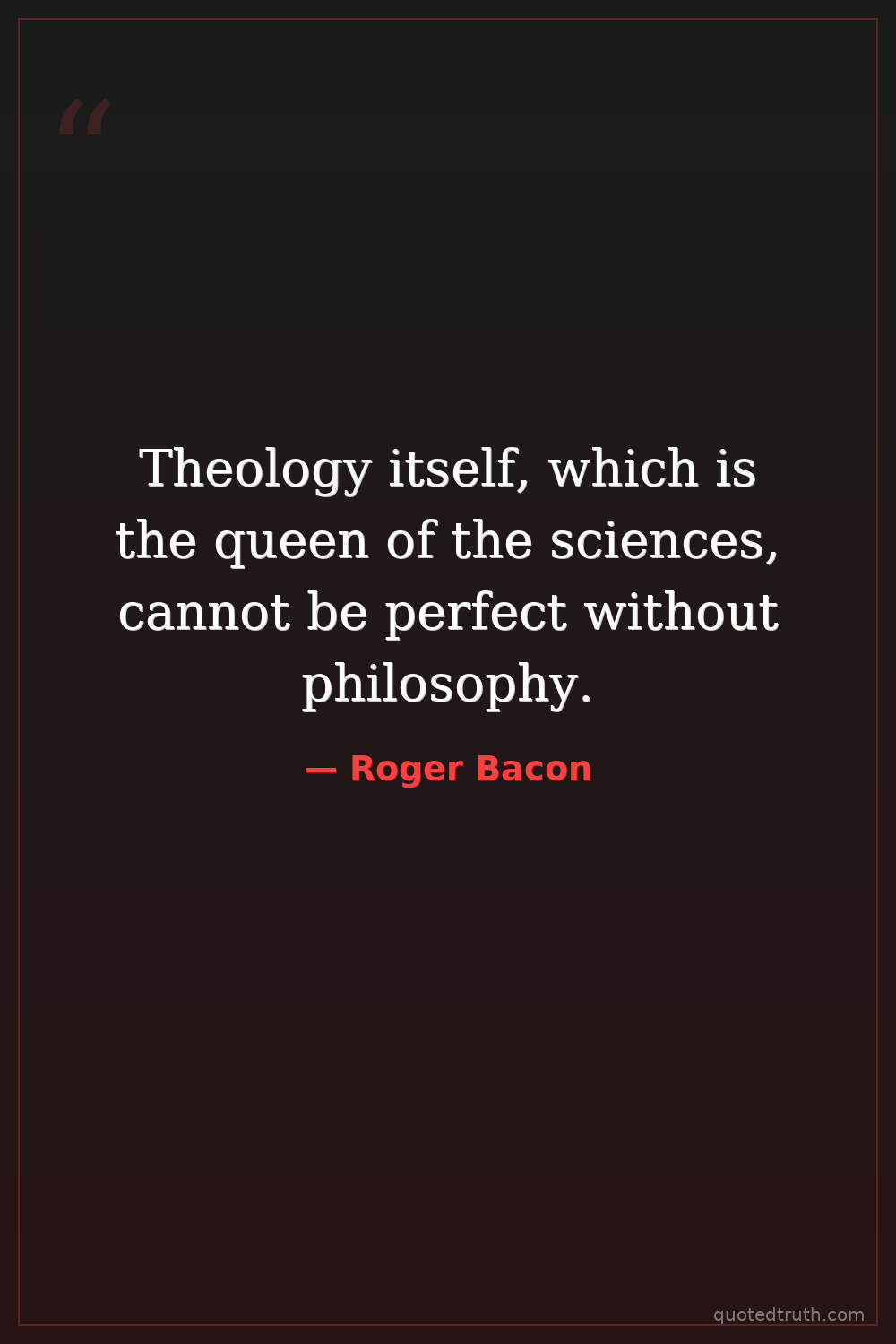 Theology itself, which is the queen of the sciences, cannot be perfect without philosophy.