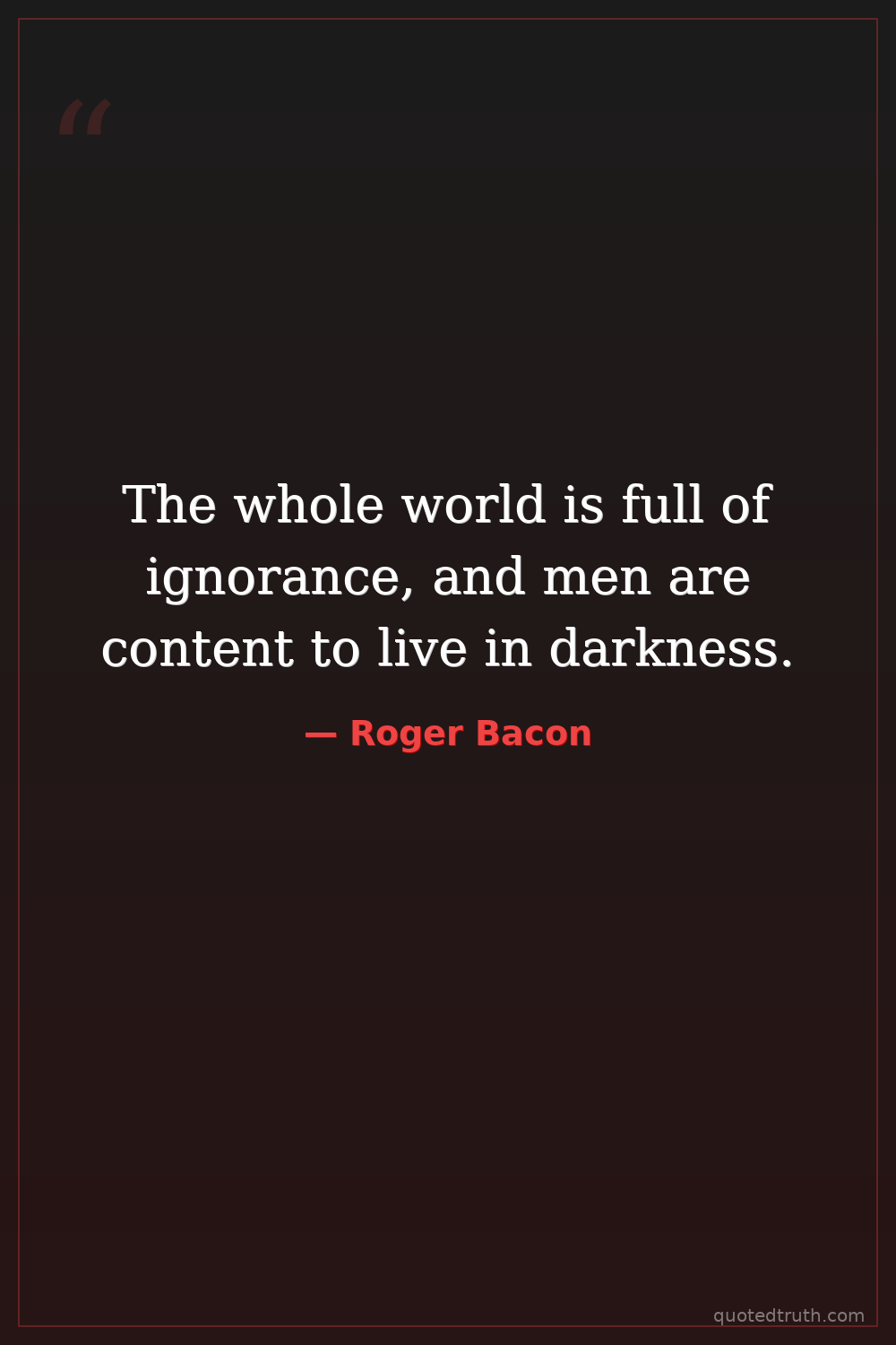The whole world is full of ignorance, and men are content to live in darkness.