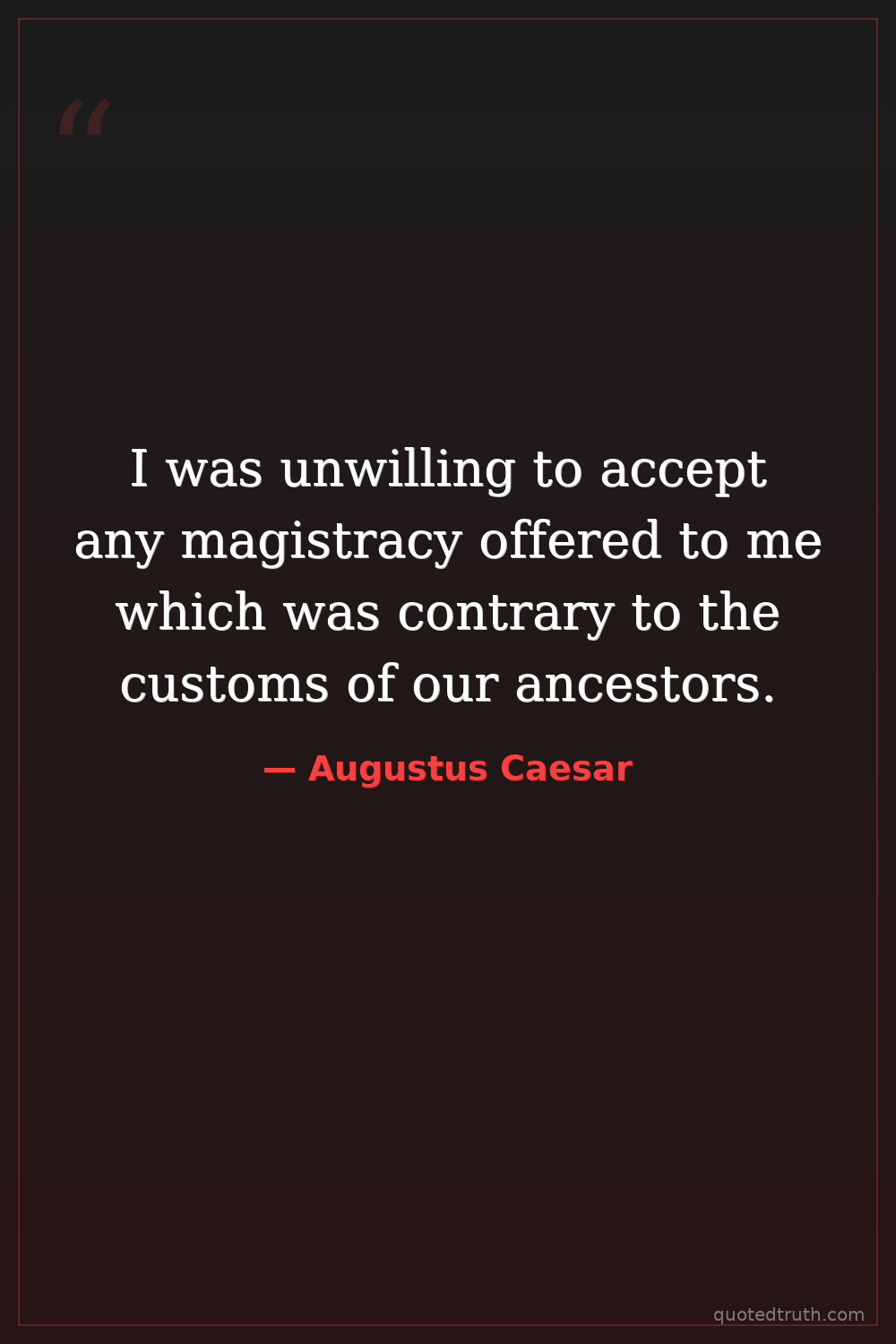 I was unwilling to accept any magistracy offered to me which was contrary to the customs of our ancestors.