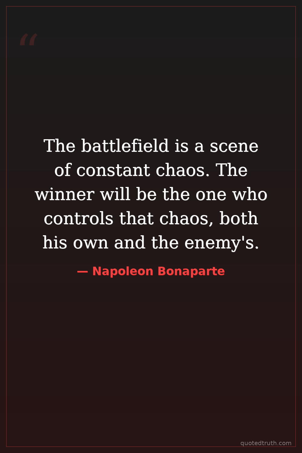 The battlefield is a scene of constant chaos. The winner will be the one who controls that chaos, both his own and the enemy's.
