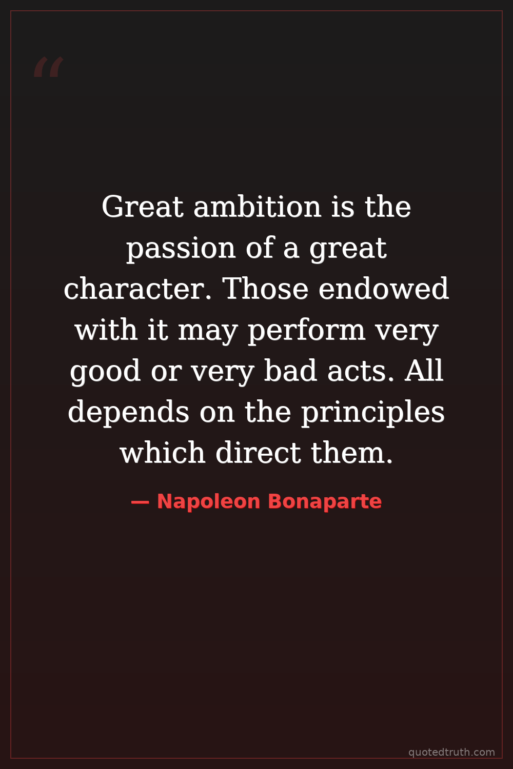Great ambition is the passion of a great character. Those endowed with it may perform very good or very bad acts. All depends on the principles which direct them.