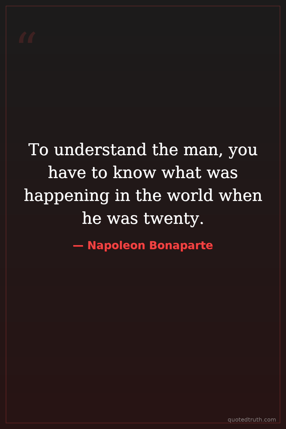 To understand the man, you have to know what was happening in the world when he was twenty.