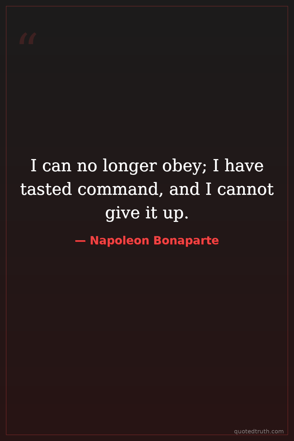 I can no longer obey; I have tasted command, and I cannot give it up.