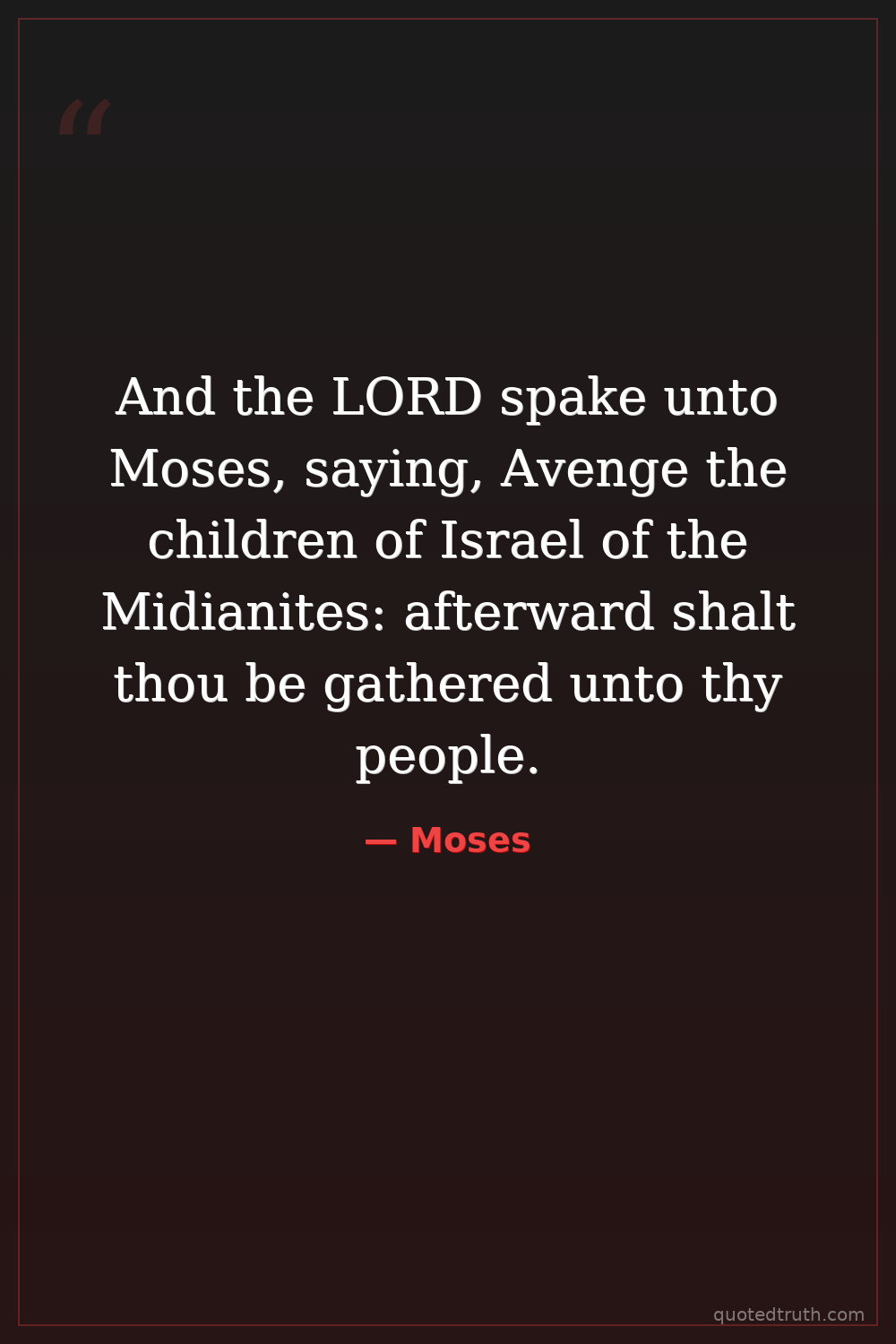 And the LORD spake unto Moses, saying, Avenge the children of Israel of the Midianites: afterward shalt thou be gathered unto thy people.