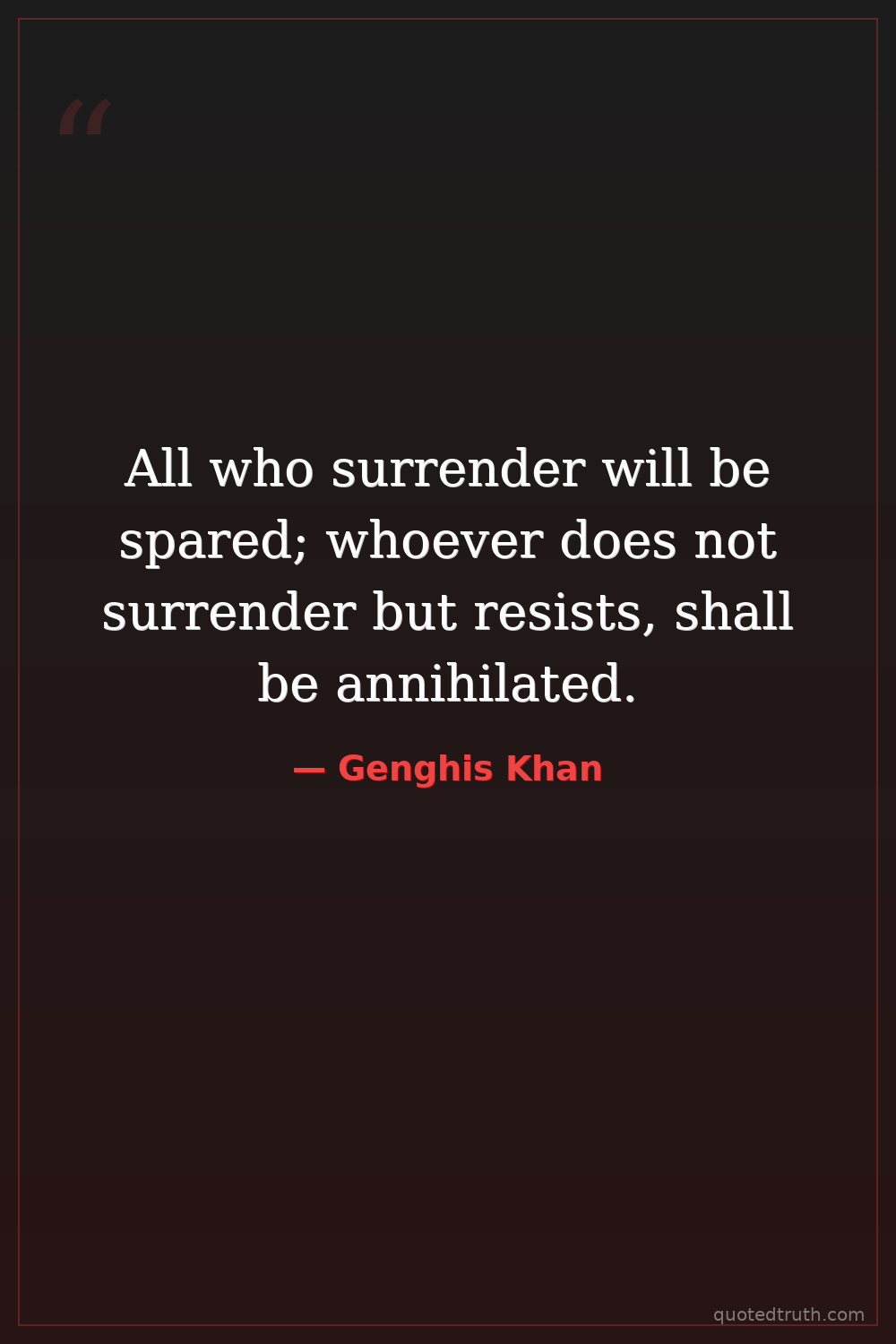 All who surrender will be spared; whoever does not surrender but resists, shall be annihilated.