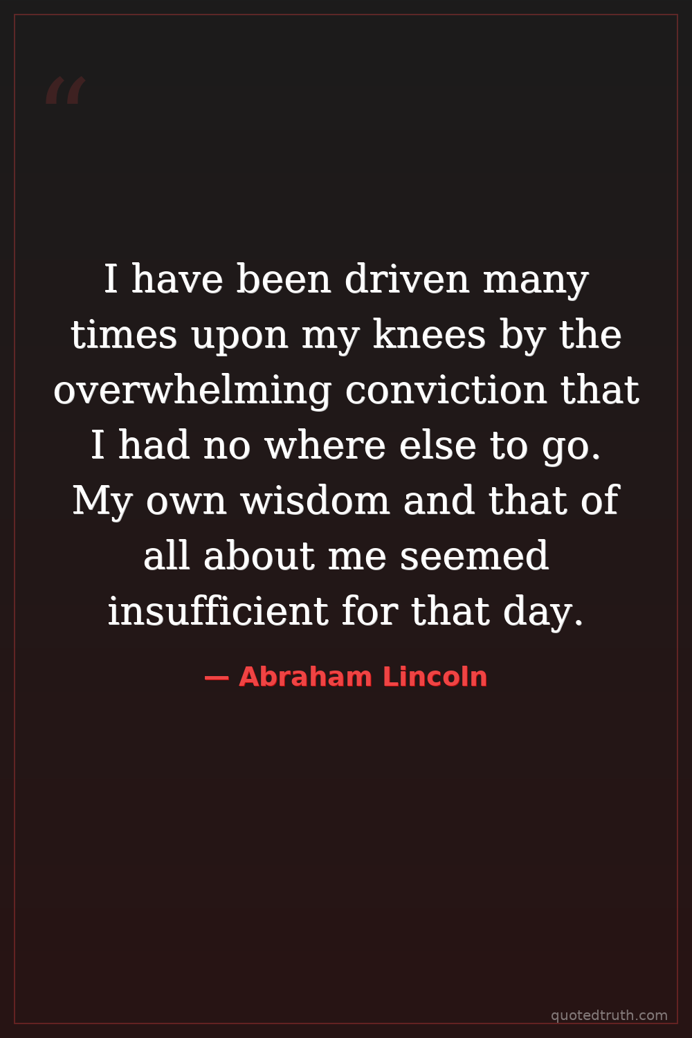 I have been driven many times upon my knees by the overwhelming conviction that I had no where else to go. My own wisdom and that of all about me seemed insufficient for that day.