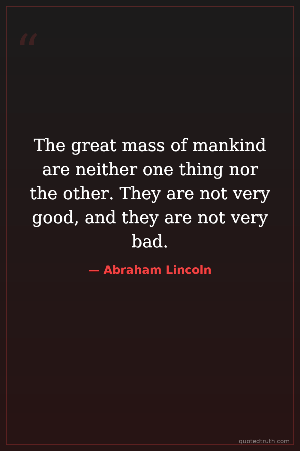 The great mass of mankind are neither one thing nor the other. They are not very good, and they are not very bad.