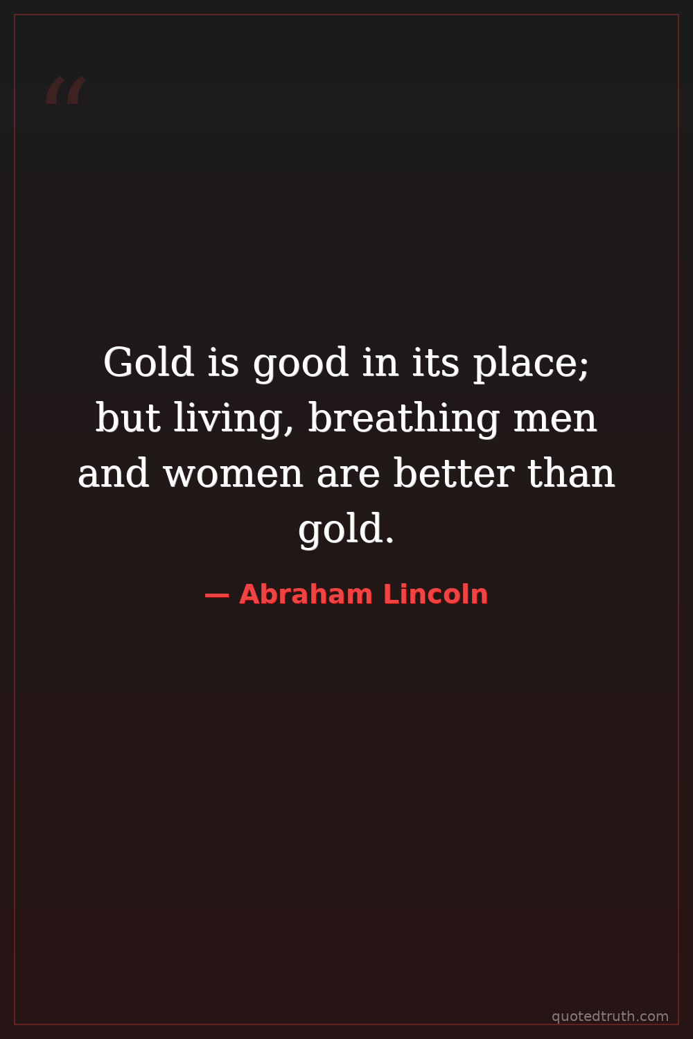 Gold is good in its place; but living, breathing men and women are better than gold.