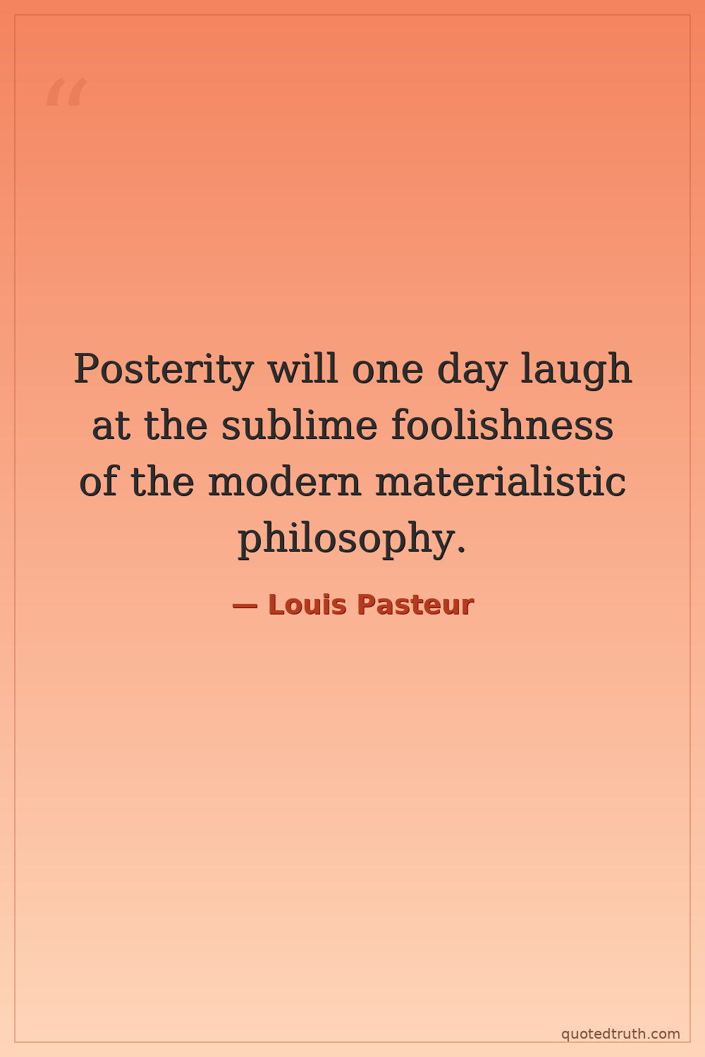 Posterity will one day laugh at the sublime foolishness of the modern materialistic philosophy.