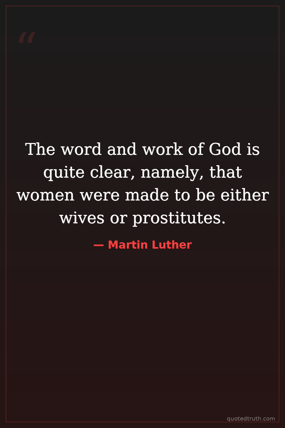 "God has created men with broad chests and shoulders, not broad hips, so that men can understand wisdom. But the place where the filth flows out is small. With women it's the other way around. That's w…"
