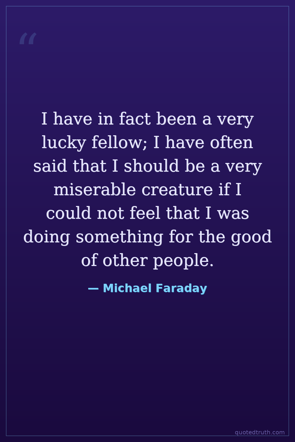I have in fact been a very lucky fellow; I have often said that I should be a very miserable creature if I could not feel that I was doing something for the good of other people.