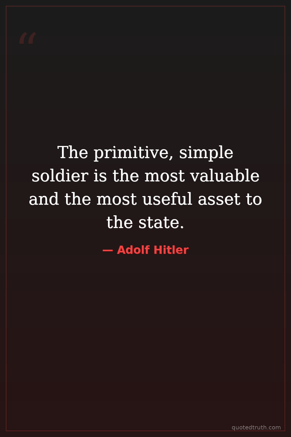 The primitive, simple soldier is the most valuable and the most useful asset to the state.