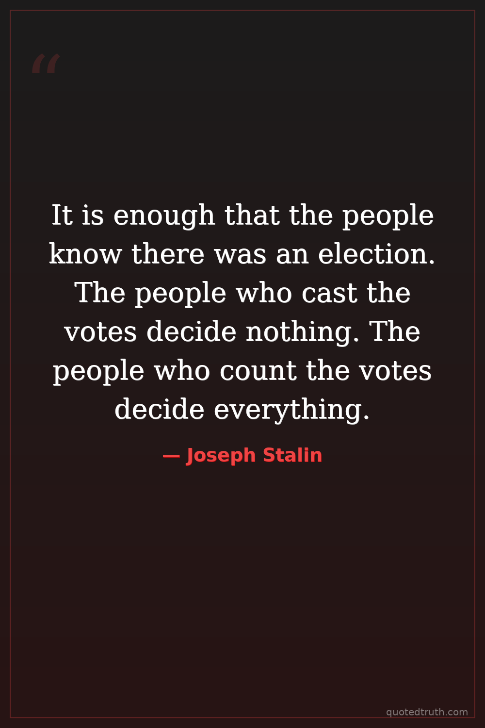 It is enough that the people know there was an election. The people who cast the votes decide nothing. The people who count the votes decide everything.
