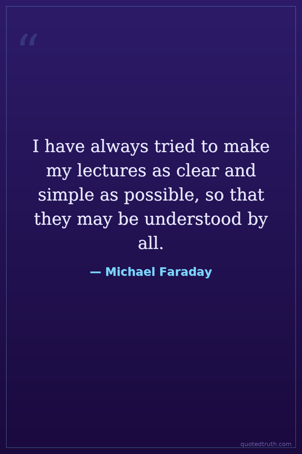 I have always tried to make my lectures as clear and simple as possible, so that they may be understood by all.