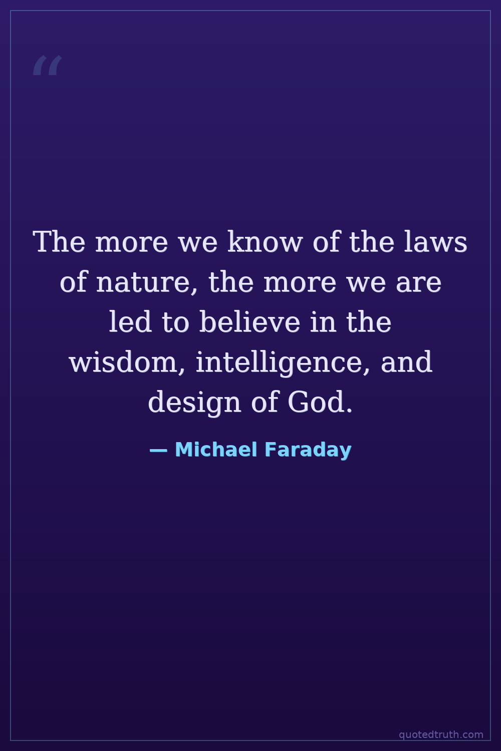 The more we know of the laws of nature, the more we are led to believe in the wisdom, intelligence, and design of God.