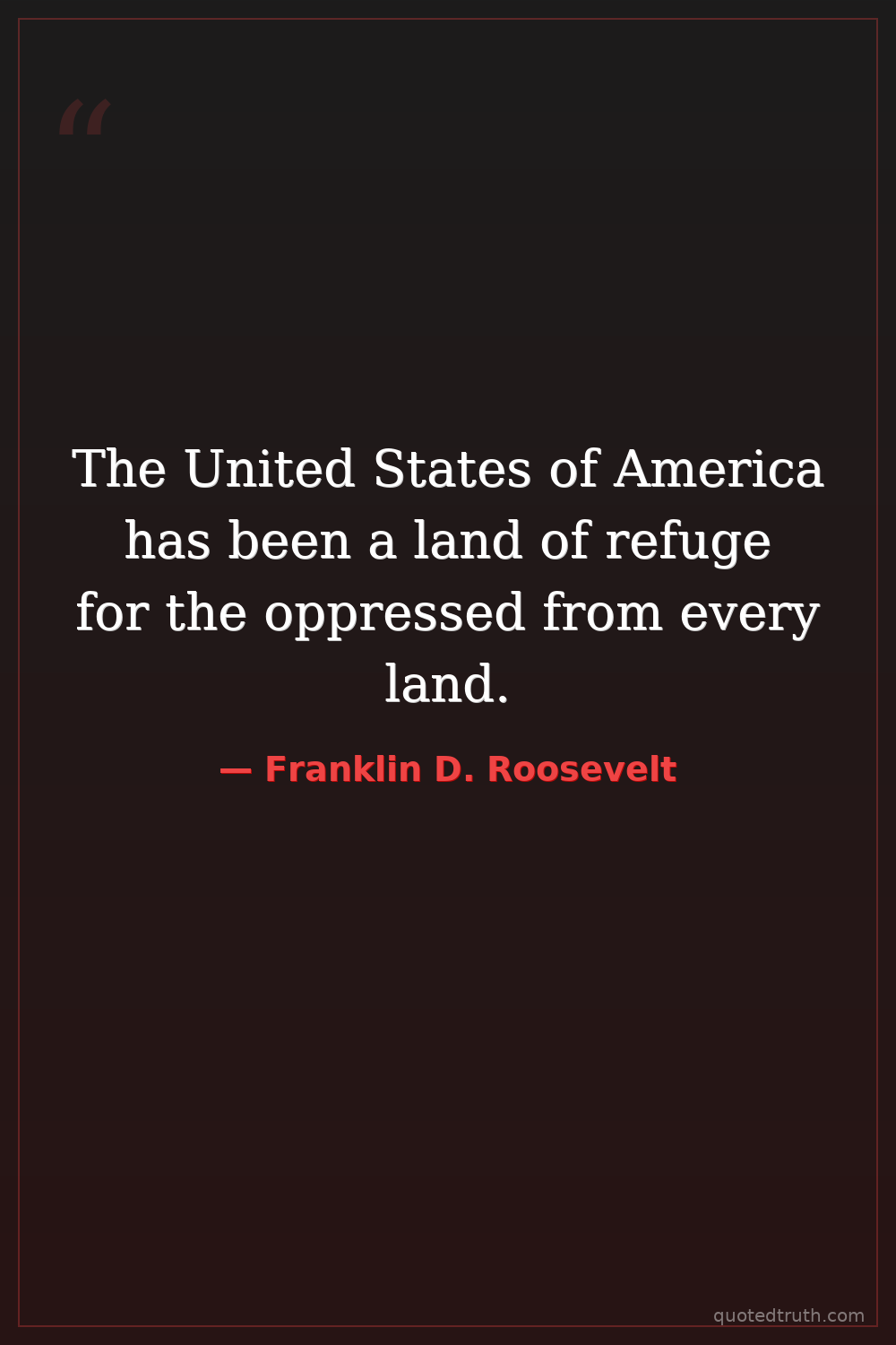 The United States of America has been a land of refuge for the oppressed from every land.