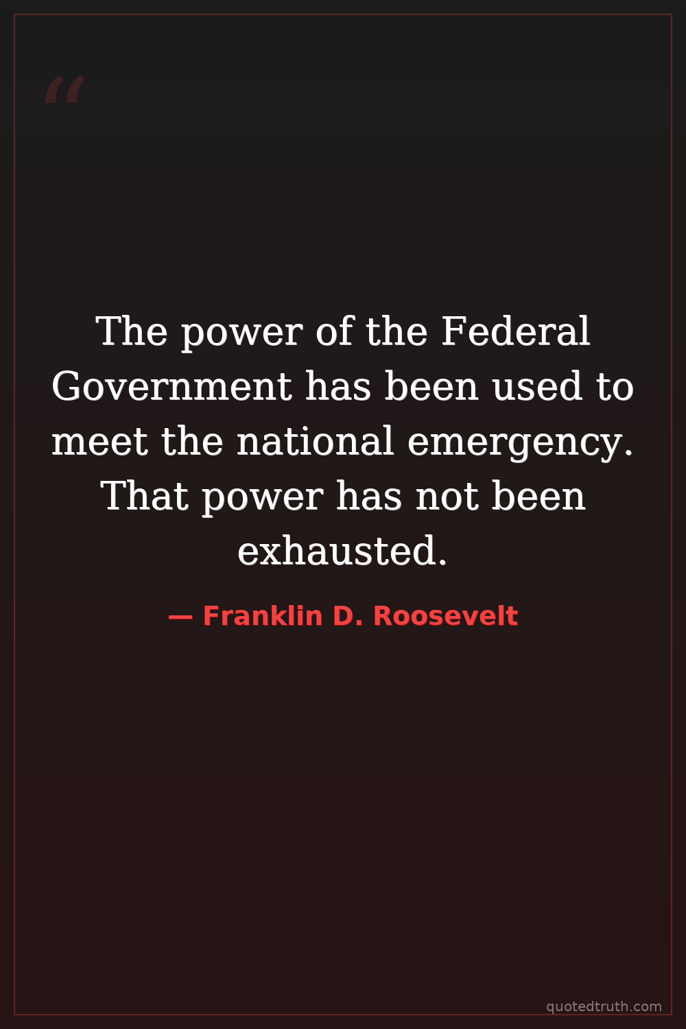 The power of the Federal Government has been used to meet the national emergency. That power has not been exhausted.