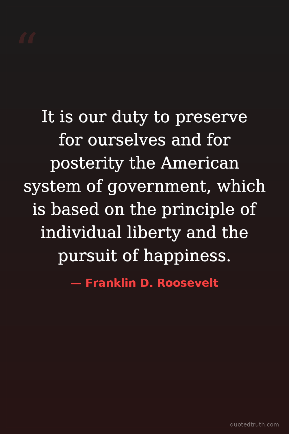 It is our duty to preserve for ourselves and for posterity the American system of government, which is based on the principle of individual liberty and the pursuit of happiness.
