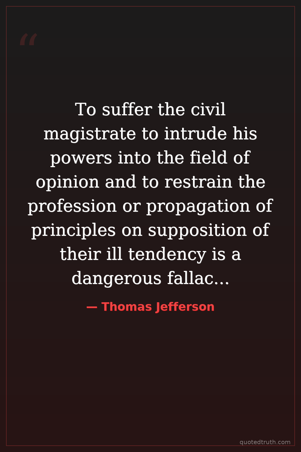 To suffer the civil magistrate to intrude his powers into the field of opinion and to restrain the profession or propagation of principles on supposition of their ill tendency is a dangerous fallacy, which at once destroys all religious liberty.