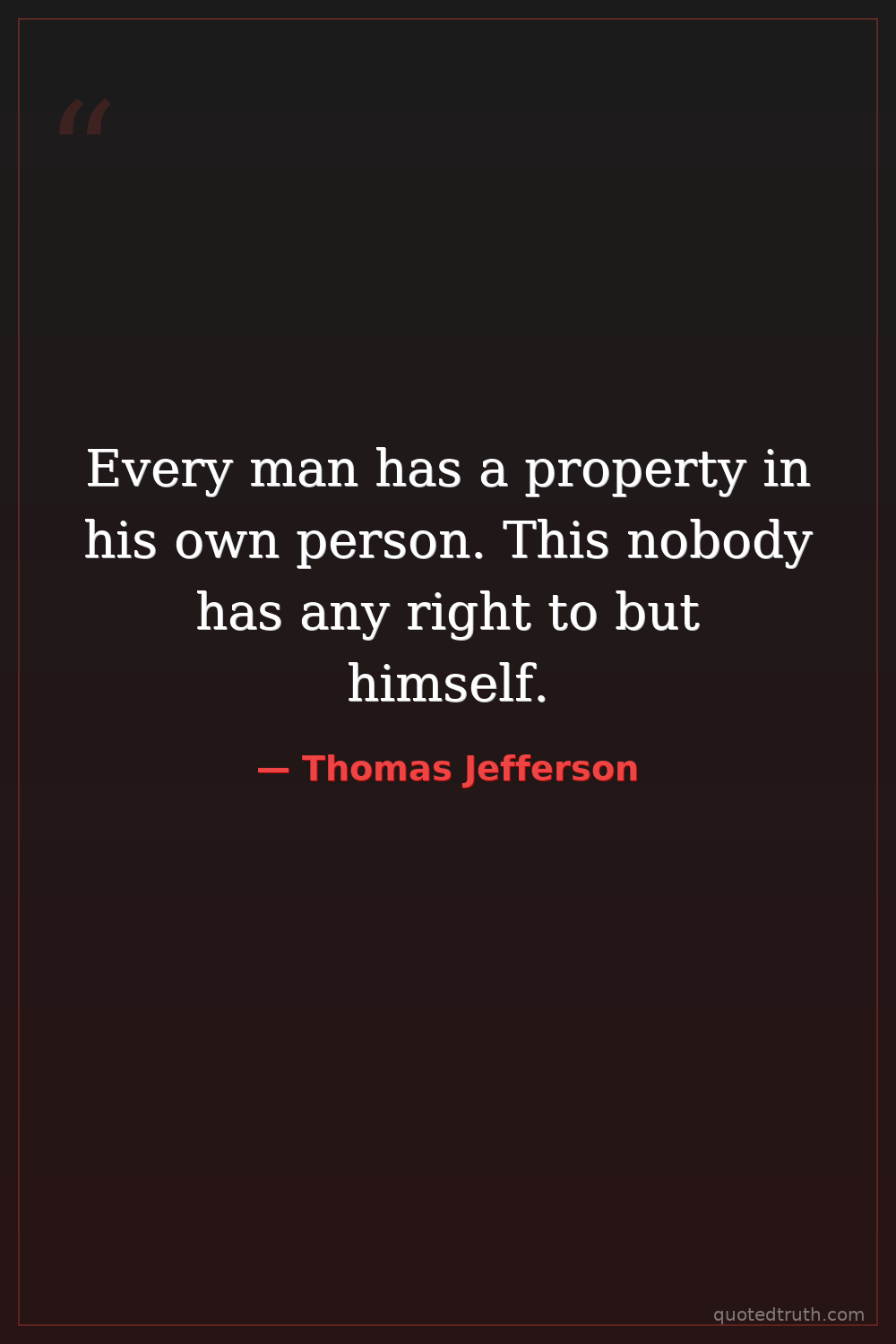 Every man has a property in his own person. This nobody has any right to but himself.