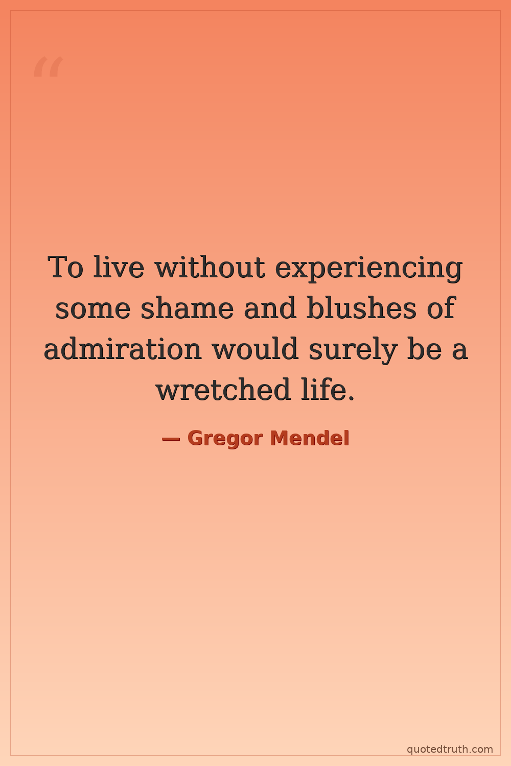 To live without experiencing some shame and blushes of admiration would surely be a wretched life.