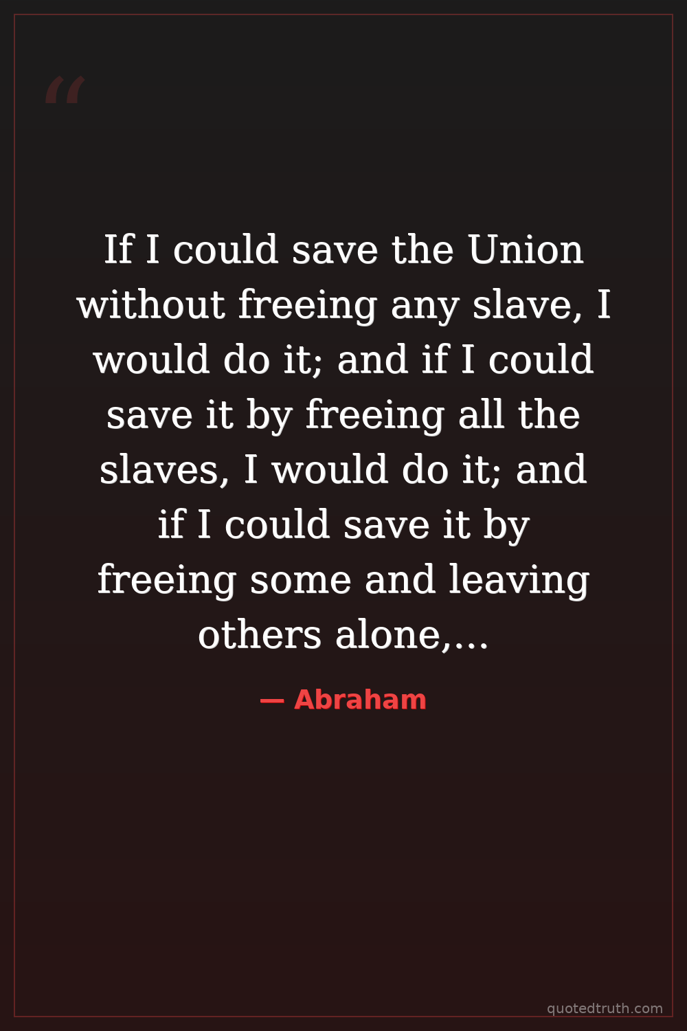 If I could save the Union without freeing any slave, I would do it; and if I could save it by freeing all the slaves, I would do it; and if I could save it by freeing some and leaving others alone, I would also do that.