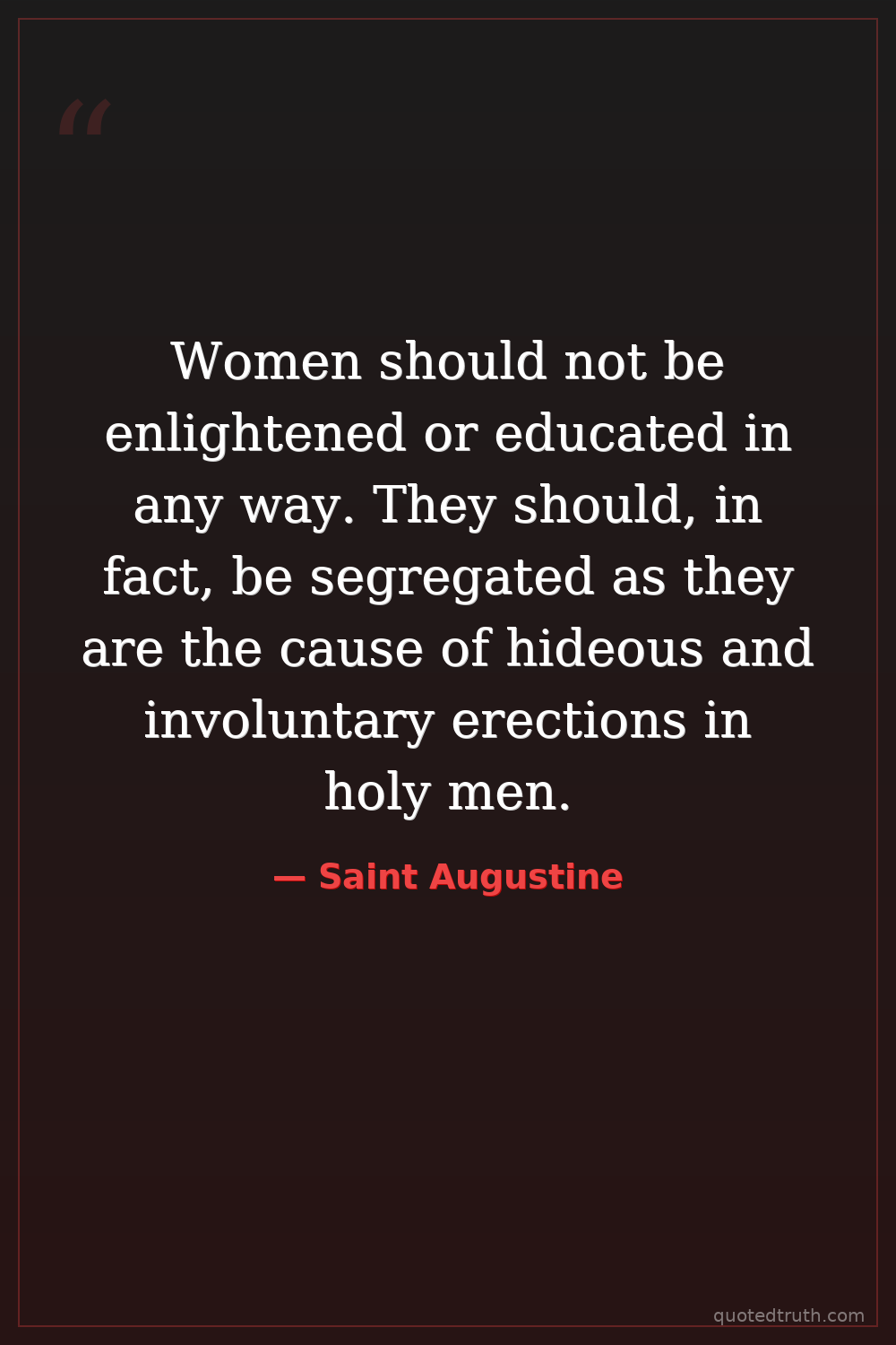 Women should not be enlightened or educated in any way. They should, in fact, be segregated as they are the cause of hideous and involuntary erections in holy men.