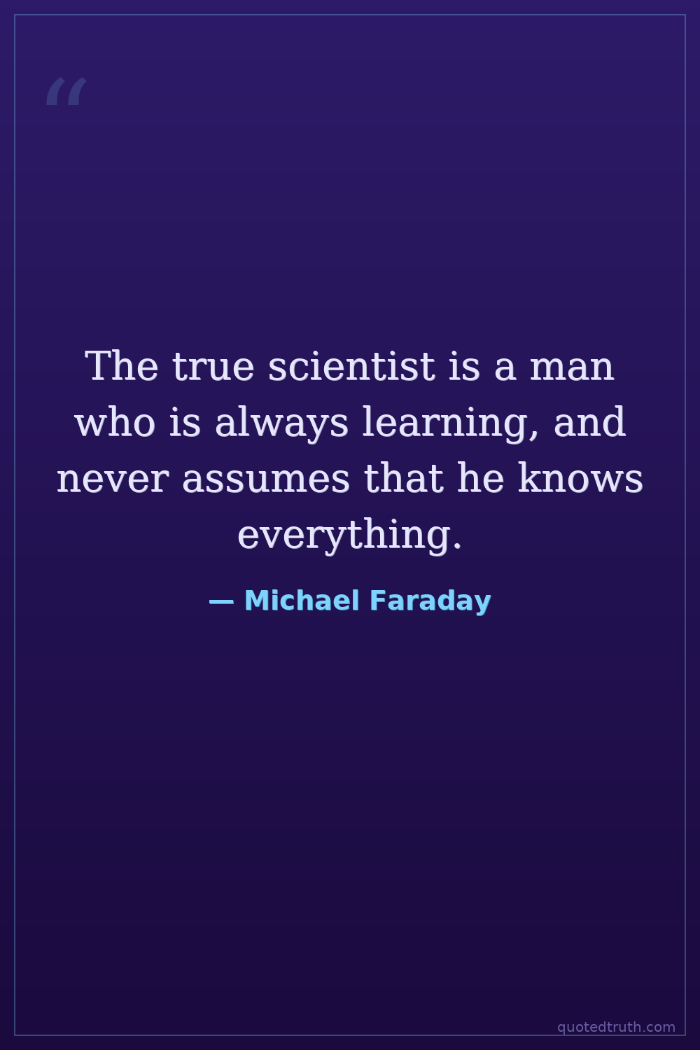 The true scientist is a man who is always learning, and never assumes that he knows everything.