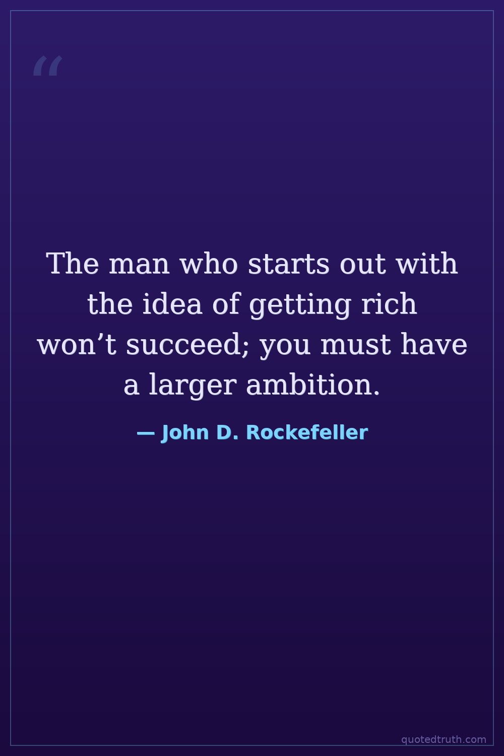 The man who starts out with the idea of getting rich won’t succeed; you must have a larger ambition.