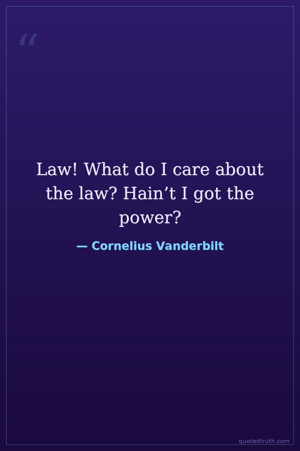 Law! What do I care about the law? Hain’t I got the power?